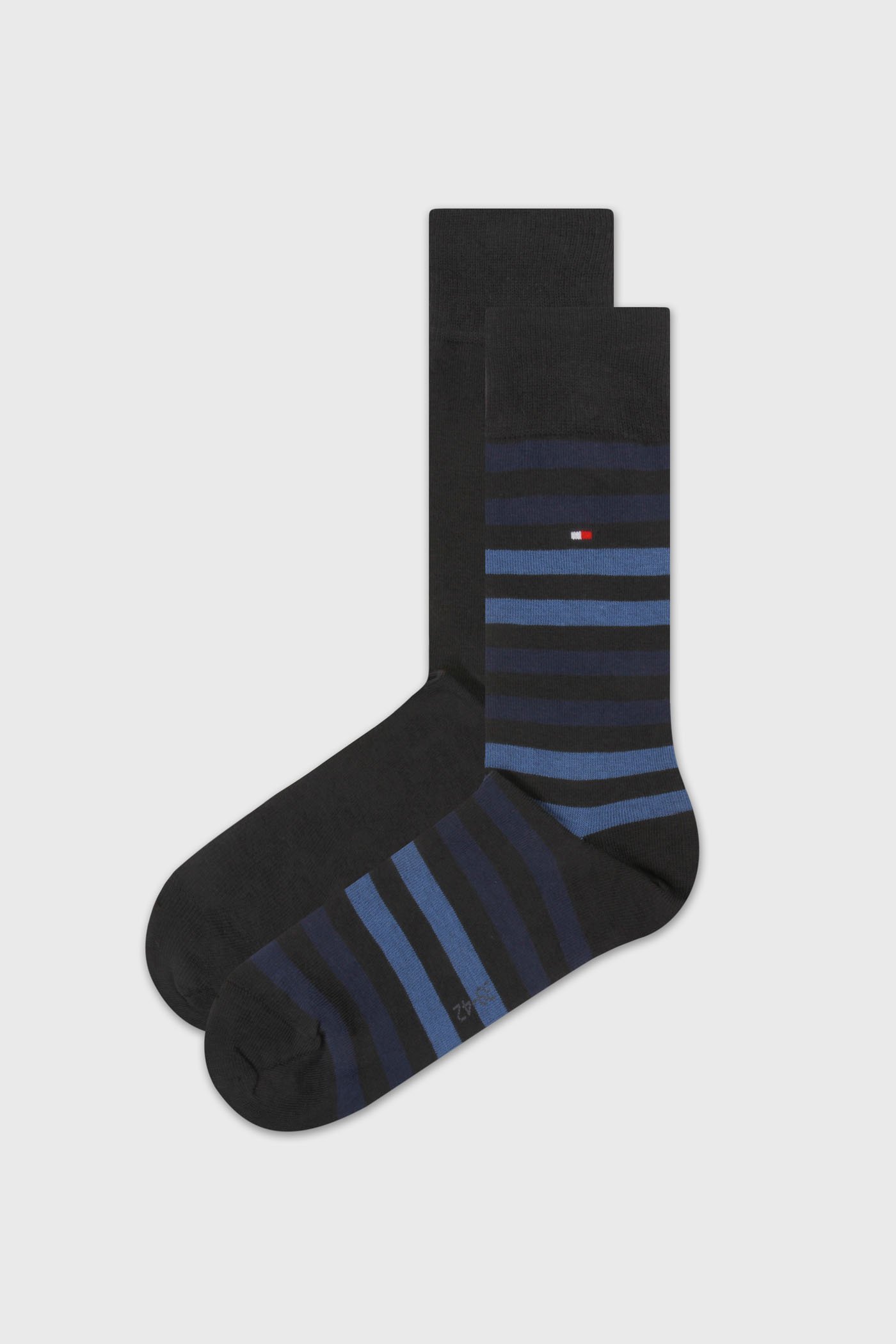 Vyšší pánské ponožky Duo Stripe od značky Tommy Hilfiger. Jeden pár je jednobarevný, druhý zdobí tenké proužky. Vhodné i na společenskou událost.