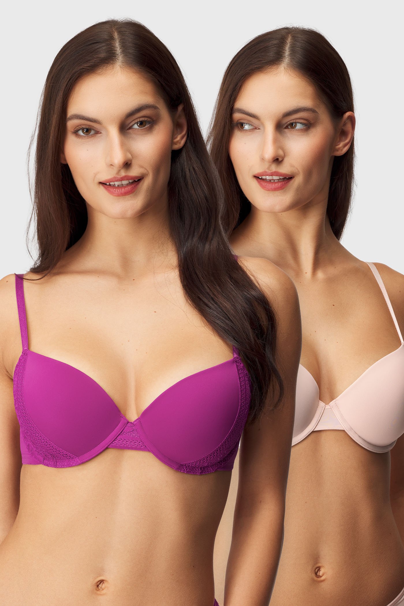 Vyztužené podprsenky Cleo v praktickém dvojbalení. Hladké tělové provedení oceníte pod světlými přiléhavými outfity, šarmantním růžové oblékněte při výjimečných událostech.