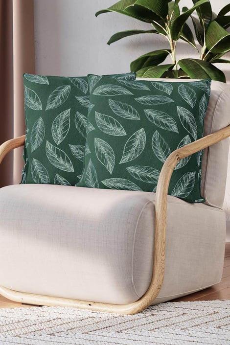 Výhodné balení 2 povlaků na polštářek Velvet Calm s motivem listů a okrasnou paspulkou. Skvělý doplněk do každého obývacího pokoje.
