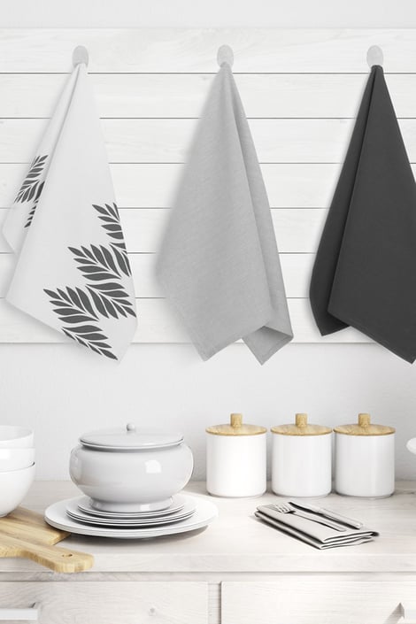Výhodné balení kuchyňských utěrek Letty Leaves od značky DecoKing. Ze 100% savé bavlny.
