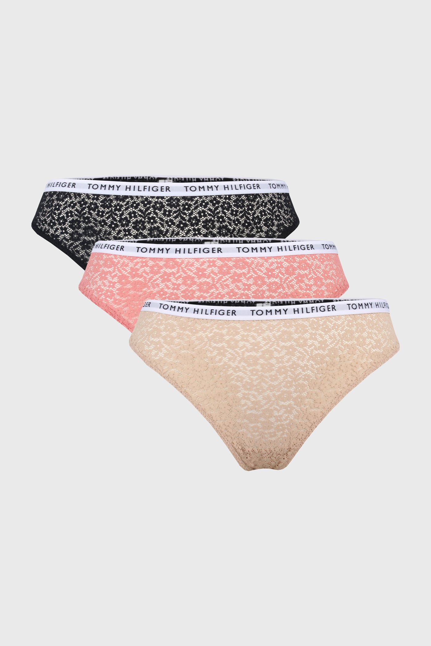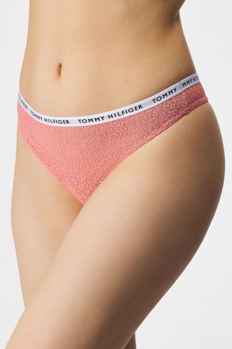 Tanga Tommy Hilfiger Essentials ve výhodném trojbalení. Jsou ušitá z něžné květinové krajky. Pas zdobí elastická guma s logem značky.