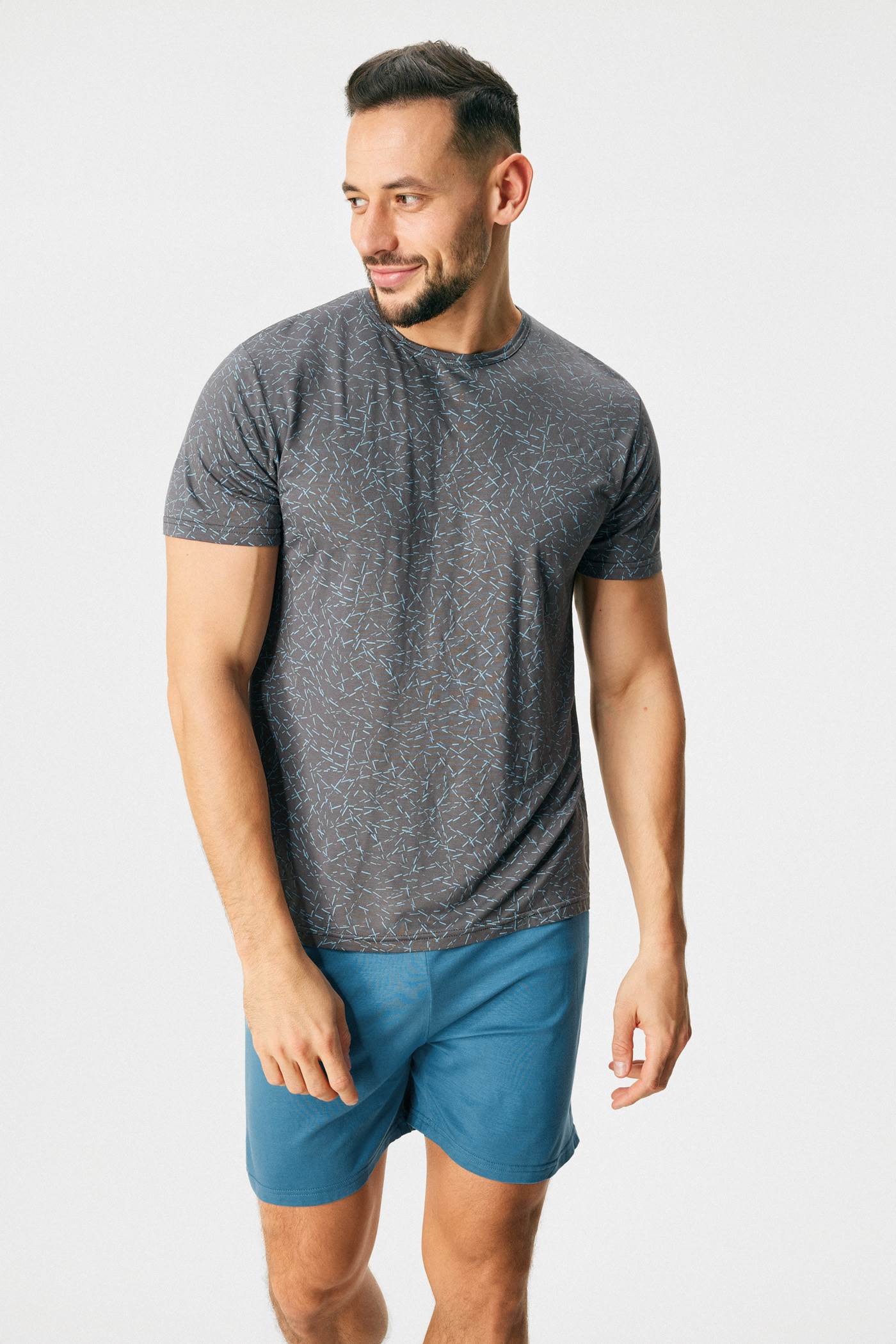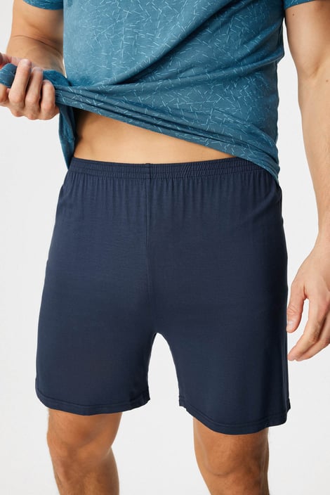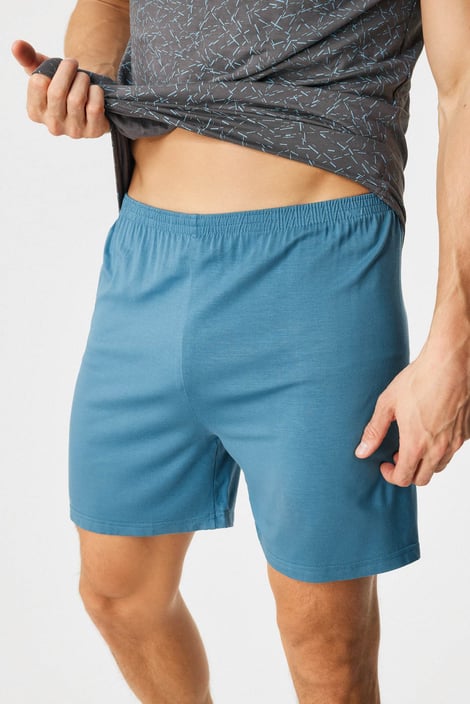 Krátké pyžamo Ventor II oceníte především v teplejším období. Tričko s drobným potiskem doplňují jednobarevné šortky s gumou v pase. Bambusová viskóza je výjimečný materiál, který krásně splývá, chladí, má antibakteriální účinky a podporuje termoregulaci.