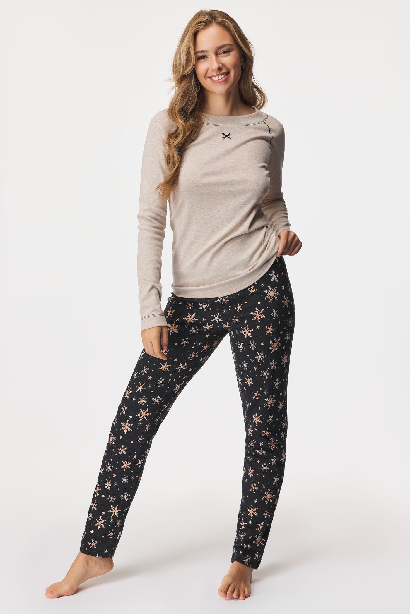 Bavlněné pyžamo Denali vás zahřeje v chladných nocích. Měkký úplet je na těle příjemný a postará se o vaše pohodlí. Tričko s dlouhým rukávem doplňují kalhoty s motivem hvězdiček.