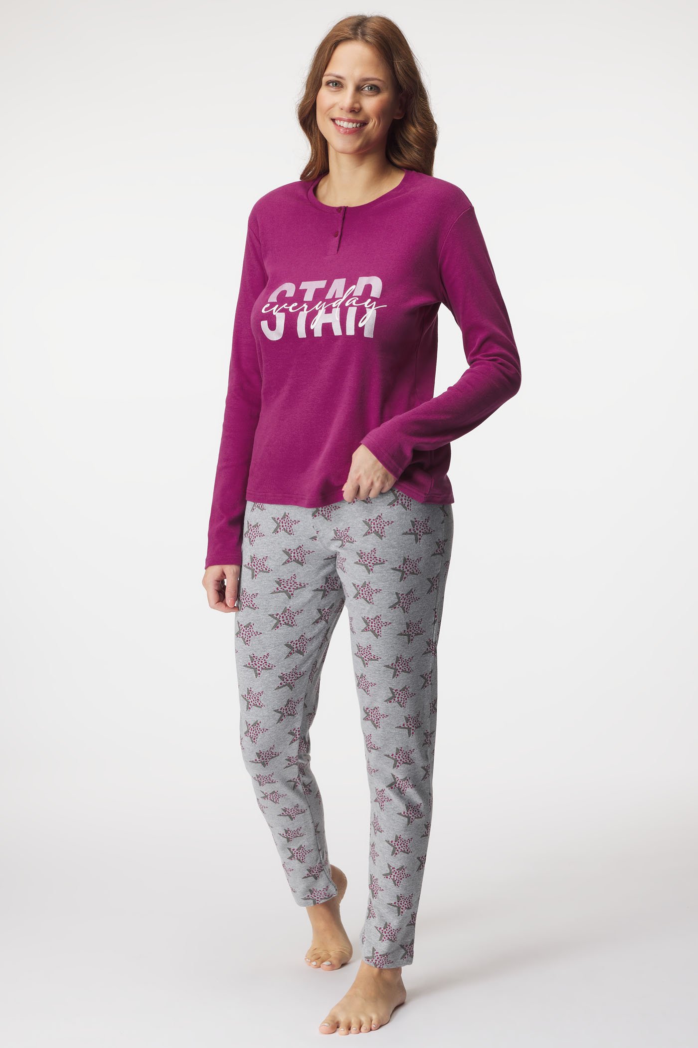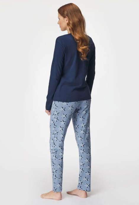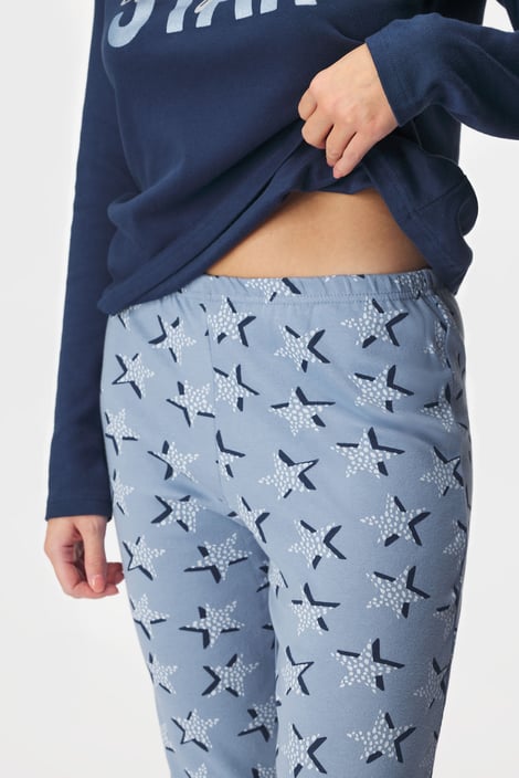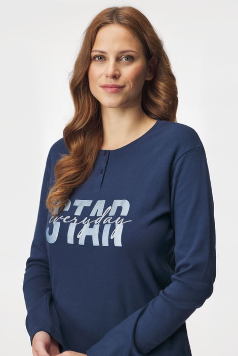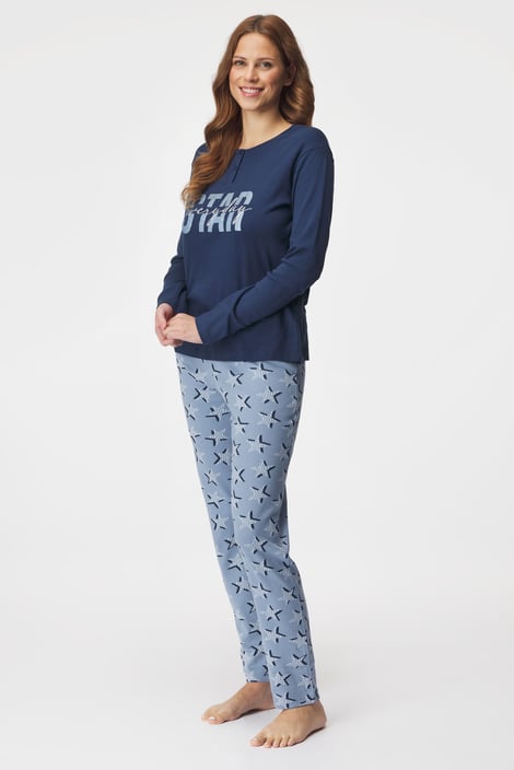 Dámské bavlněné pyžamo Everyday star pro vaše noční pohodlí. Tričko s dlouhými rukávy zdobí kontrastní potisk, na dlouhých kalhotách vynikají drobné hvězdičky.