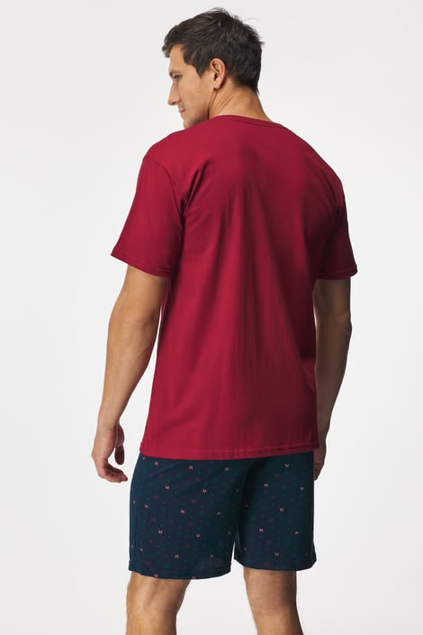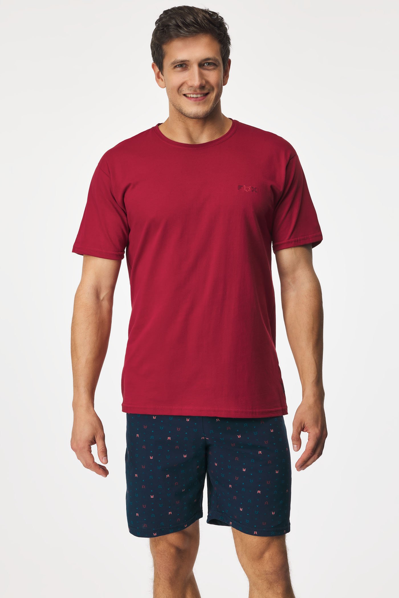 Dopřejete si pohodlný spánek v pyžamu Fox ze 100% bavlněného úpletu. Jednobarevné tričko doplňují vzorované kraťasy ve volném střihu.