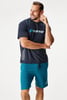 Pánské bavlněné pyžamo Martie ve sportovním designu. Tričko zdobí kontrastní prošití i logo na hrudi.