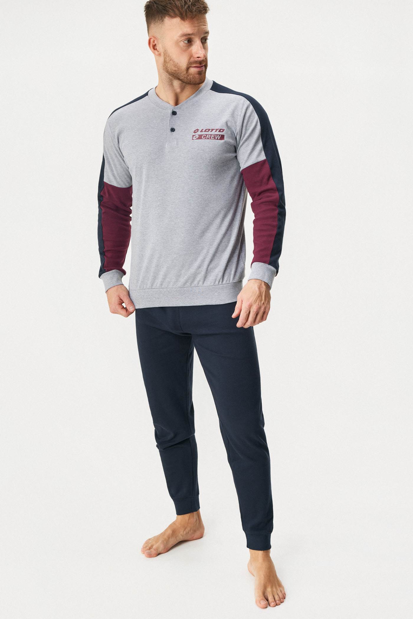 Bavlněné pyžamo Ogden z měkkého úpletu pro váš klidný spánek. Dlouhé rukávy i nohavice jsou zakončené manžetami. Pas tvoří pohodlná guma. Triko zdobí knoflíčky ve výstřihu.