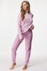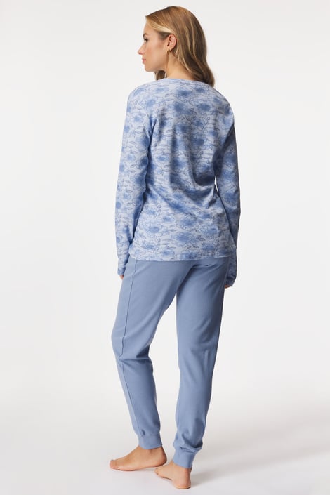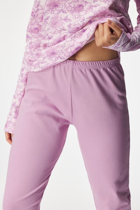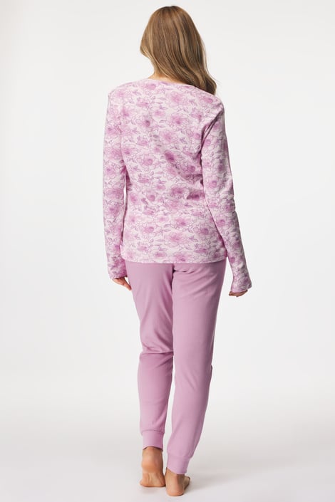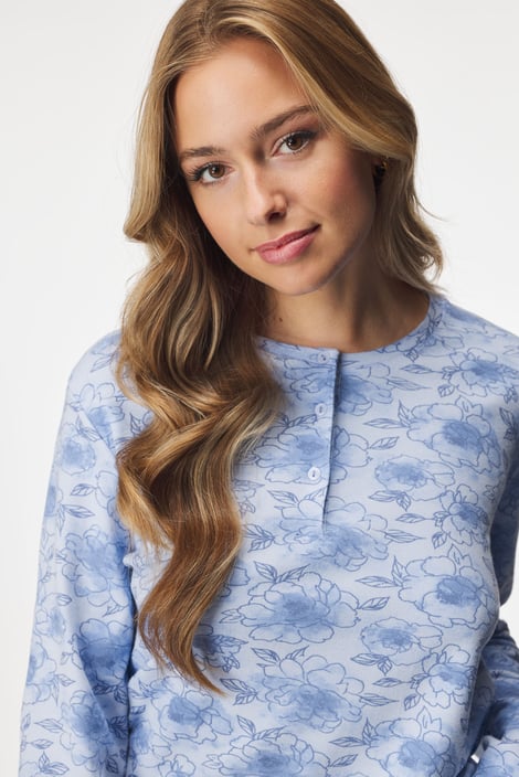 Pyžamo Roses je ušité ze 100% bavlny, která je měkká a příjemná na spaní. Květované tričko s dlouhým rukávem doplňují jednobarevné kalhoty.