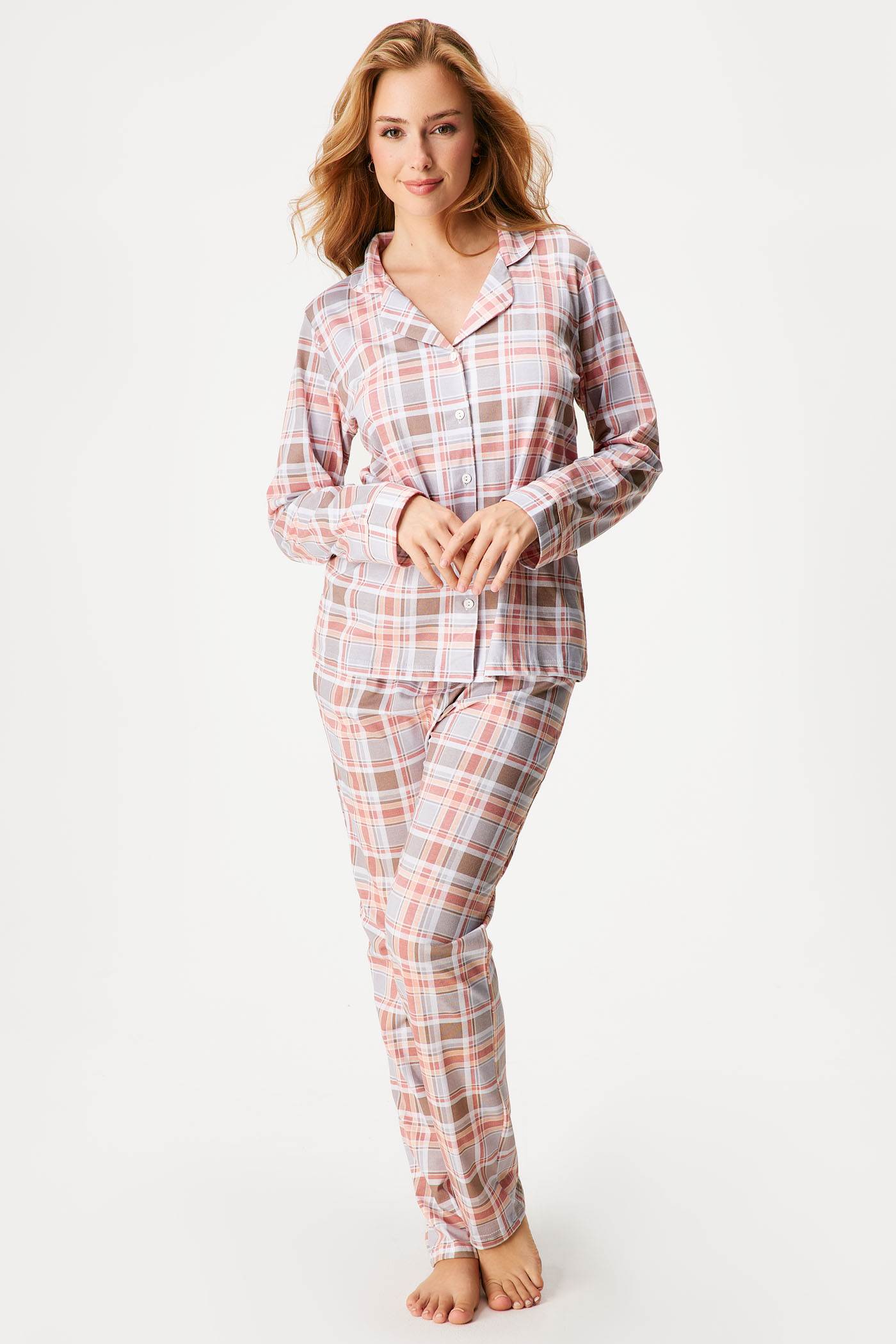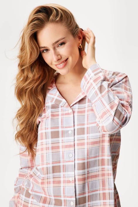 Dámské pyžamo Sharon si zamilujete na první obléknutí. Je ze 100% bavlny, která je měkká na dotek a hebká na těle. V oblíbeném kostkovaném střihu.