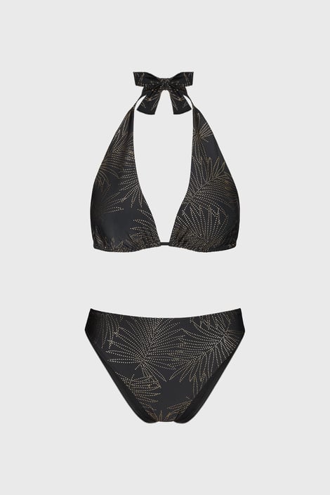 Bikiny Gold Flower rafinovaně zvýrazní vaše ženské křivky. Horní díl můžete nosit jako klasické trojúhelníčkové košíčky, nebo ho můžete uvázat jako efektní bandeau. Vyšší kalhotky mají vykrojenější nohavičky a lichotivě tak vykreslí vaše nohy. Z dílny Astratexu.