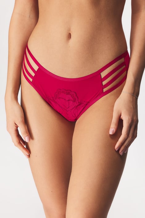 Brazilské kalhotky Amulet I s efektně řešenými boky. Z hladkého mikrovlákna a bohaté květinové krajky.