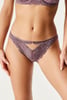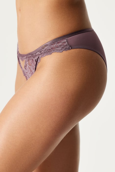 Brazilské kalhotky Briella z bohaté květinové krajky a průsvitné síťoviny. Na přední straně rafinovaný průstřih.