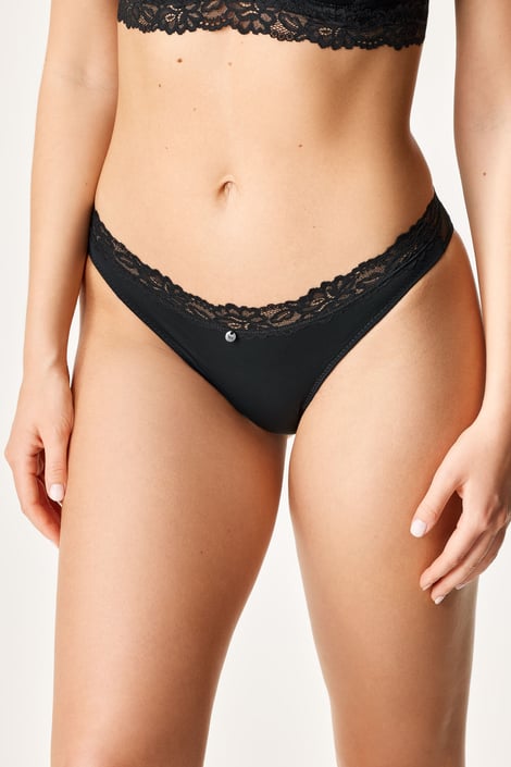 Brazilské kalhotky Esme z hladkého mikrovlákno a jemné síťoviny, na které vynikají decentní puntíky. V pase měkká kraječka.