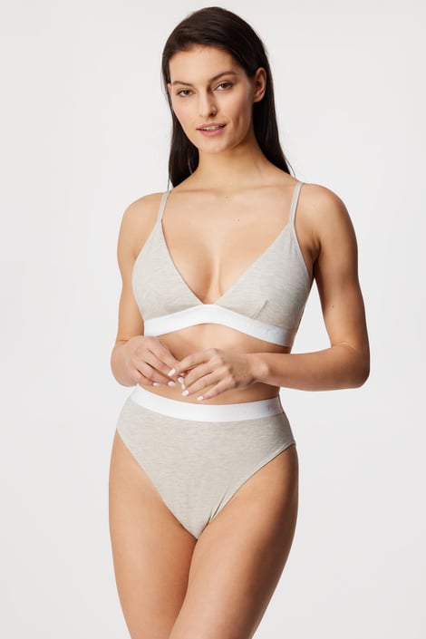 Brazilky Hunkemöller Cutie Gray s měkkou širokou gumou zdobenou vytkaným nápisem "Power of Positivity".