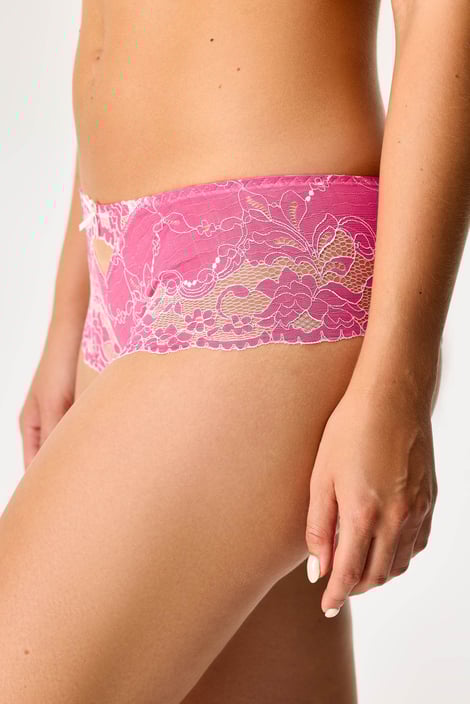Kalhotky Mila zahalí zadeček do jemné dvoubarevné krajka. V lichotivém brazilském střihu.