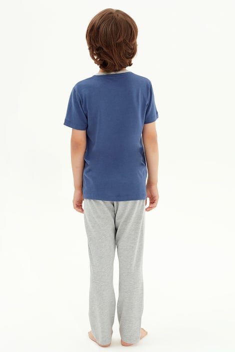 Chlapecké pyžamo Creative v sobě kombinuje příjemný bavlněný úplet a lehkou viskózu. Tričko s výstřihem do V zdobí kontrastní potisk, kalhoty jsou jednobarevné.