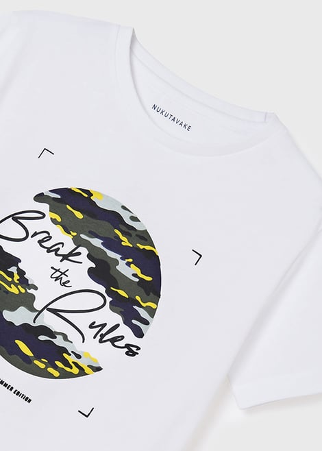 Chlapecké tričko Mayoral Break ze 100% bavlny jako nepostradatelný základ šatníku. Klasický volnější střih s potiskem na přední straně.
