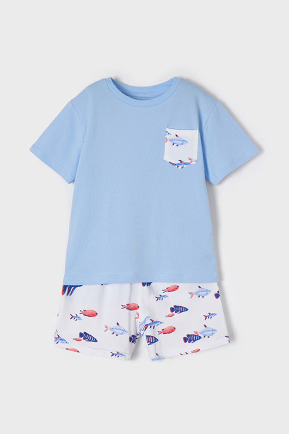 Chlapecký komplet Mayoral Relax z měkkého bavlněného úpletu, ve kterém se váš chlapeček bude cítit nesmírně příjemně. Tričko má drobnou kapsičku, šortky se dají v pase stáhnout.