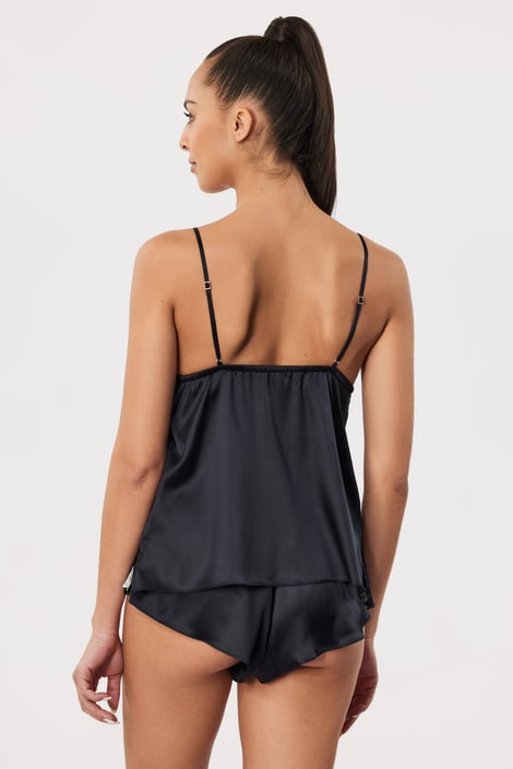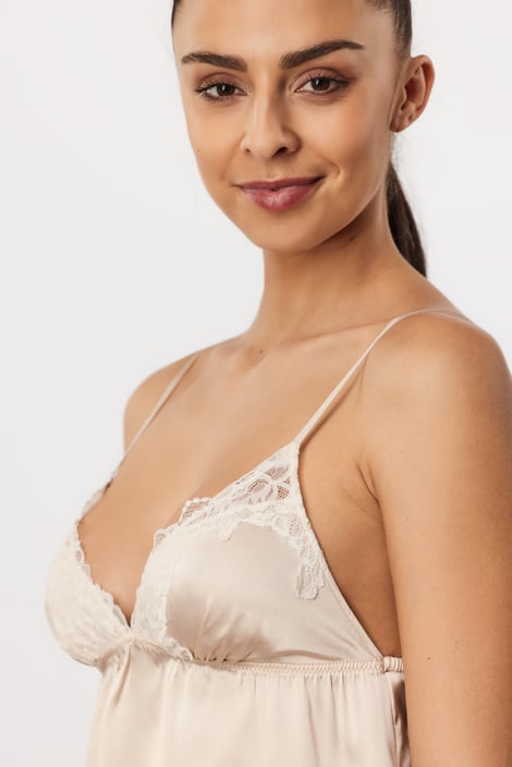 Dámská košilka Thallo z jemného hedvábí patří mezi elegantní a nesmírně příjemné kousky. Budete se v ní cítit přitažlivě a zároveň pohodlně. V dekoltu vyniká romantická krajka.