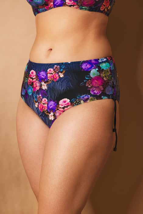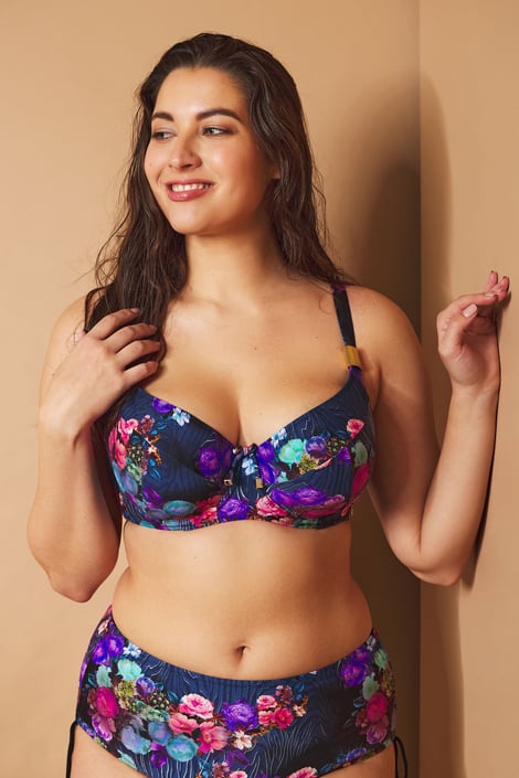 Dvoudílné plavky Casablanca v lichotivém střihu pro plné tvary. Podprsenka s nevyztuženými košíčky ukrývá měkce vyztužený boční díl, který pomůže přiblížit velká prsa blíže ke středu. O dostatečnou oporu se postarají kostice i vysoký střed. Kalhotky se zvýšeným pasem mají na bocích zdrhovací šňůrky, kterými si upravíte výšku vykrojení.