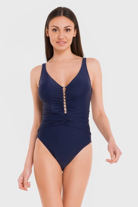 Jednodílné plavky Tanzania Navy pro ženy, které si potrpí na elegantní a minimalistické kousky. Skryté košíčky pěkně vymodelují prsa, bříško vyhladí formující plavkovina. S ozdobnou aplikací.