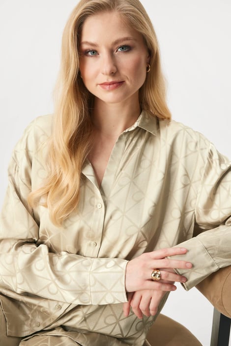 Dámské saténové pyžamo Satin Aop prémiové značky Calvin Klein v pohodlně volném střihu. Klasický propínací kabátek s dlouhým rukávem doplňují dlouhé kalhoty s gumou v pase. Ušito z krásného vzorovaného saténu.