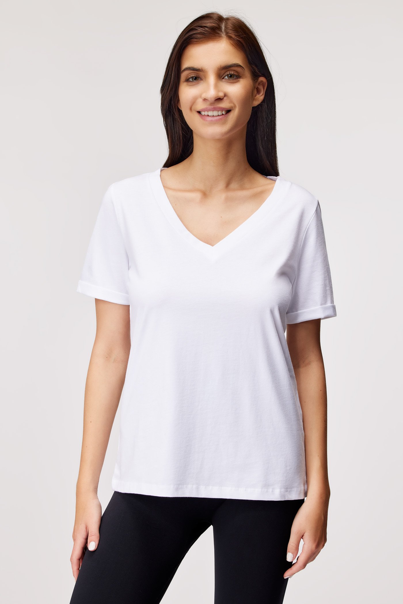 Dámské basic tričko Pieces Ria V-Neck ze 100% bavlny. S výstřihem do V.