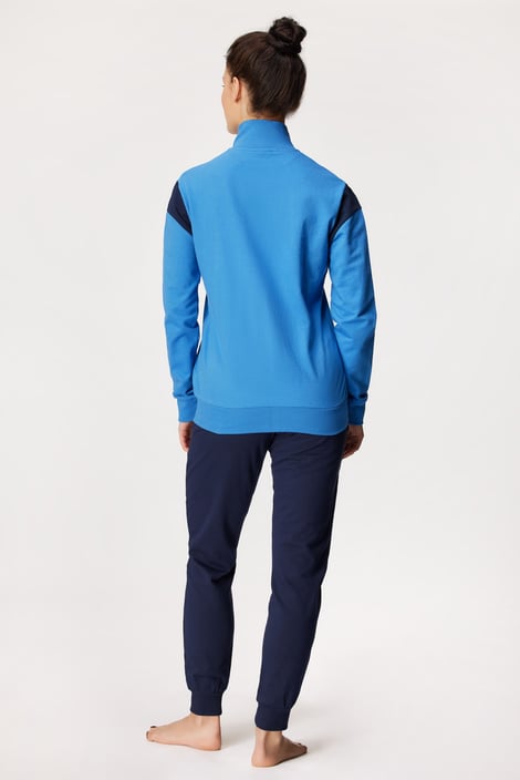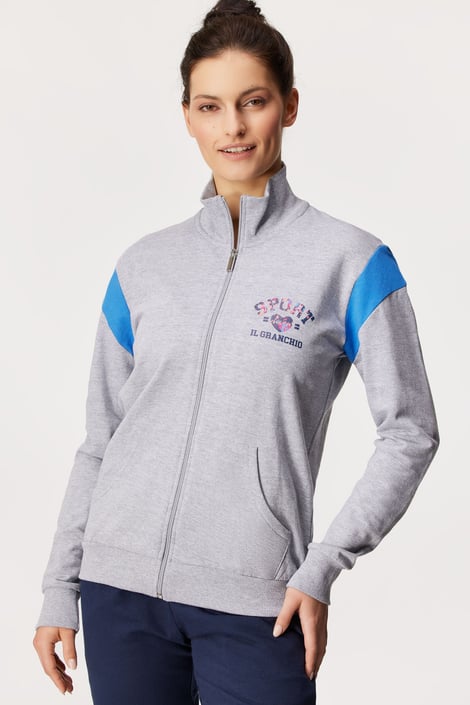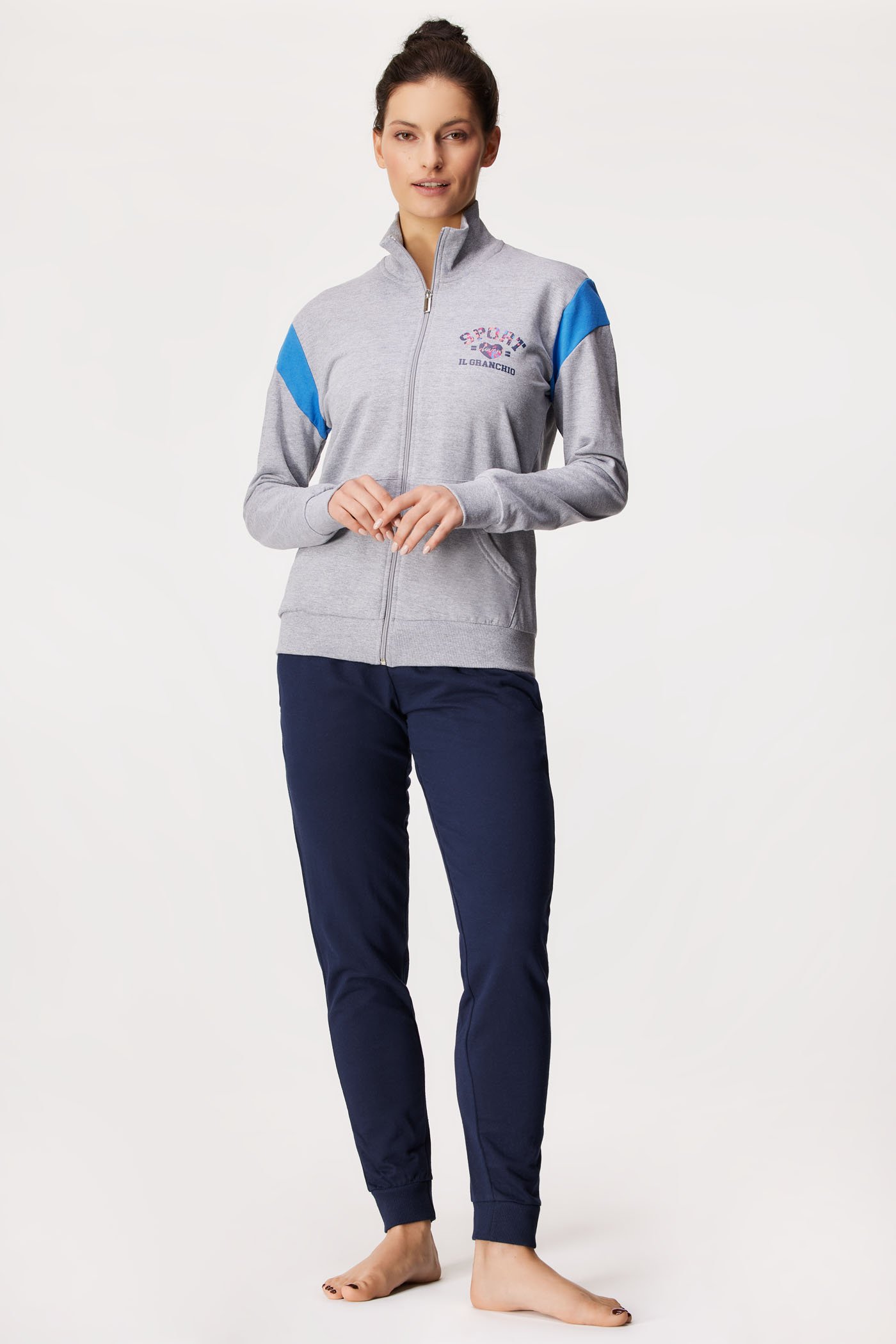 Dámský komplet Grigi je pohodlný nejen na domácí nošení, ale i na dlouhé cesty. Mikina se stojáčkem má na sobě drobný potisk, dlouhé kalhoty jsou jednobarevné. S praktickými kapsami.