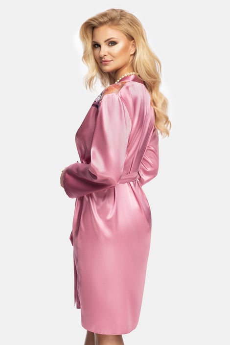 Dámský saténový župánek Shelby vás zahalí do elegance. Jemný satén doplňují vsadky z vyšívaného tylu. Dopřejte si pocit výjimečné ženskosti.
