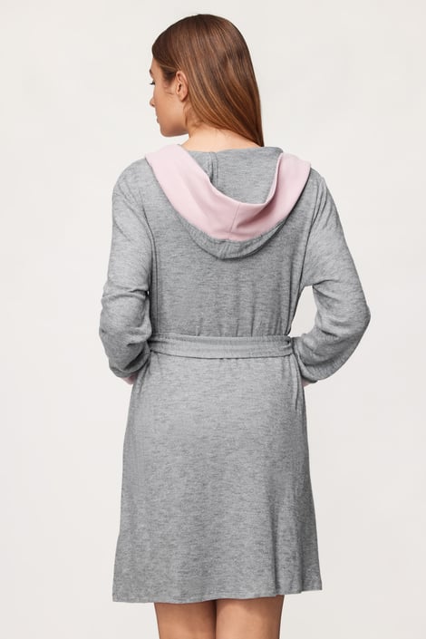 Lehoučký dámský župan DKNY Here to chill ze splývavého úpletu vám dopřeje vytoužené pohodlí. Je hebký a nesmírně příjemný na dotek.