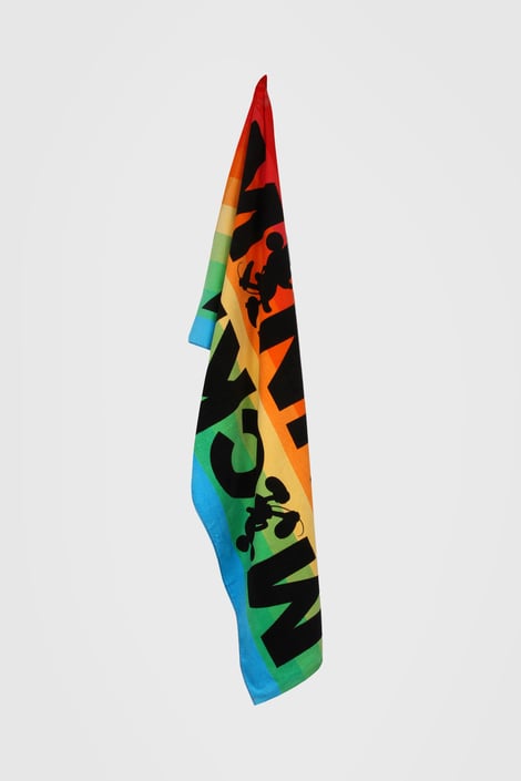 Dětská osuška Minnie Mickey se stylovými nápisy v duhových barvách. Ze 100% bavlny, která dobře saje vodu.