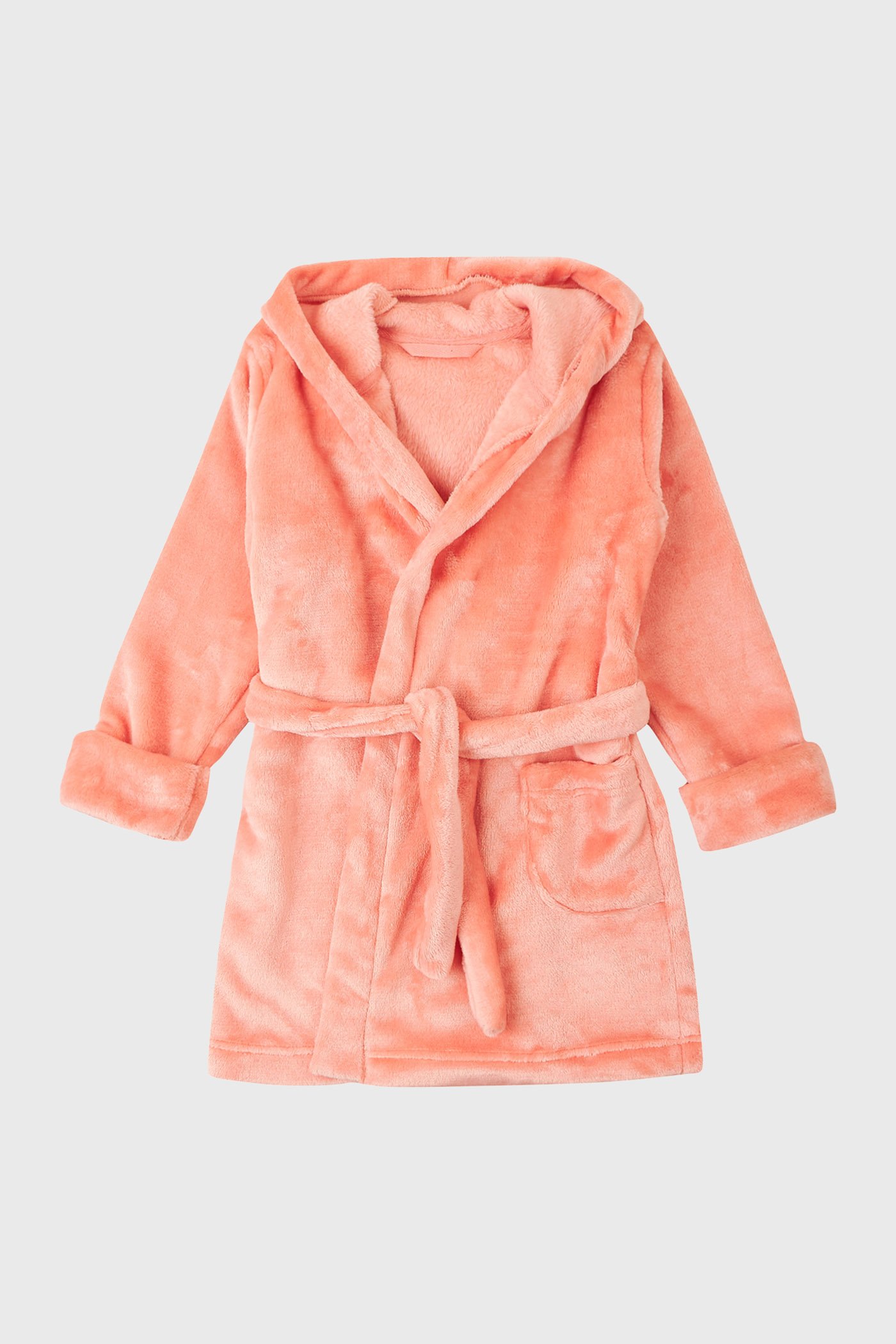 Dívčí župan Apricot star z měkounkého mikroplyše. S praktickou kapucí.