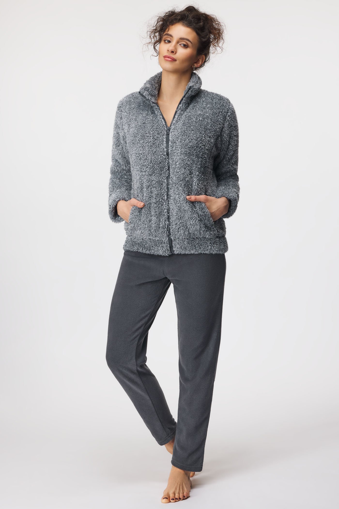 Domácí komplet Hazael vám v zimním období zajistí tepelný komfort. Mikinu z měkkého mikroplyše doplňují fleecové kalhoty s kapsou na zadní straně.