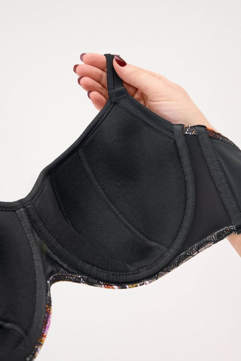 Dvoudílné plavky Lucia Big z dílny Astratexu jsou jako stvořené pro plné tvary. Podprsenka je vybavena košíčky s kosticemi, které jsou příjemně měkké a prostorné a dodají ňadrům žádoucí tvar. Vyšší střed je zaručeně podrží na svém místě. S pestrobarevným potiskem se zlatavou nitkou. Doplněno černými klasickými kalhotkami se zvýšeným pasem. Materiál je odolný vůči UV záření, chlóru i opalovacím prostředkům.