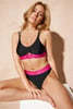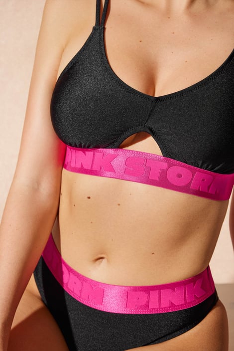 Dvoudílné plavky PINK STORM Soft Studio v černé barvě s jemným třpytem doplňuje kontrastní růžová. Podprsenku lambádového střihu obléknete pohodlně přes hlavu. Obvod tvoří široká guma s nenápadnými logy značky. Košíčky jsou nevyztužené, opatřené výjímatelnými vycpávkami pro dotvarování poprsí. Střed zdobí efektní průstřih, tenká ramínka bez délkové regulace jsou zdvojená. Doplněno brazilskými kalhotkami. Navrženo specialisty Astratexu.