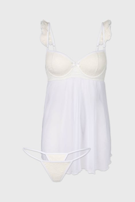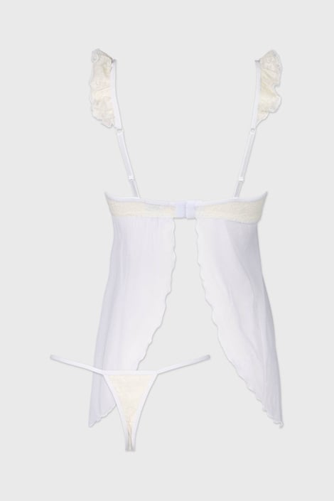 Předveďte partnerovi své ženské křivky v erotické košilce Milagros. Prsa smyslně poodhalí krajkové košíčky, průsvitná síťovina decentně zahalí tělo.
