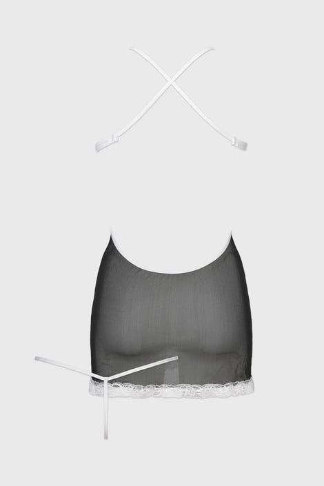 Erotická košilka Nanna zpestří vaše milostné hrátky. Smyslně průsvitná síťovina decentně zahalí tělo, něžná bílá krajka ozdobí ženské křivky.