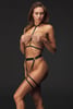 Erotický komplet Zoey ze smyslných strappy pásků a zlatých komponentů. Okořeňte chvíle ve dvou!