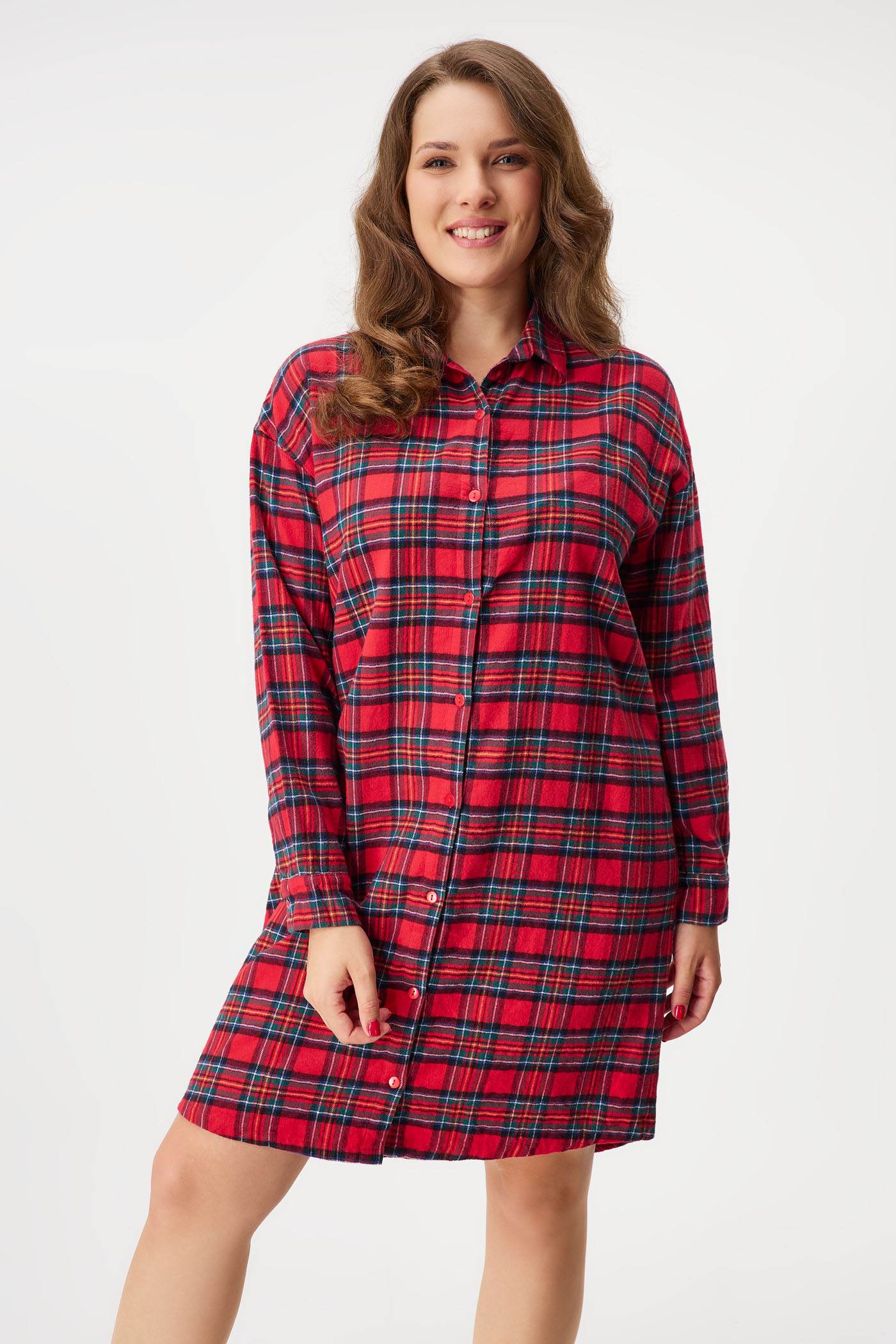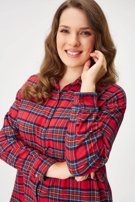 Flanelová noční košile Festive Red II ze 100% bavlny je vhodná pro chladnější období. Klasický celopropínací střih v kostkovaném designu je vhodný pro každou postavu. Zapínání je na knoflíčky až ke krku, s límečkem. Z dílny Astratexu.
