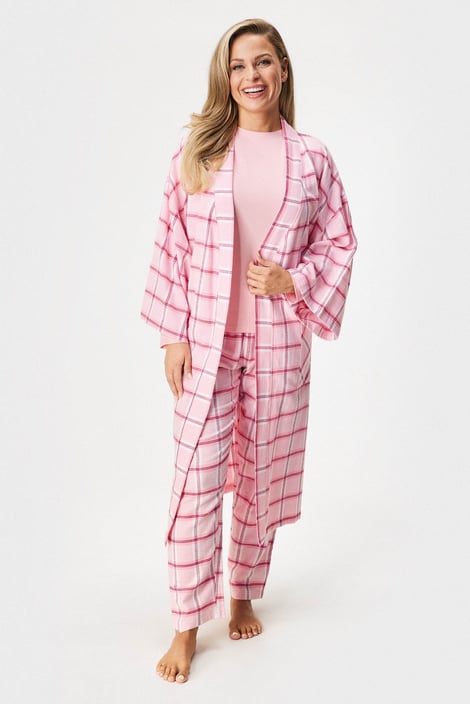 Flanelové pyžamo Winter Eve je jako stvořené pro dámy, které mají rády teplo a pohodlí. Jednobarevné triko z bavlněného úpletu s dlouhým rukávem doplňují flanelové kalhoty v kostkovaném designu. V pase je prošitá guma i zavazování na šňůrku. Navrženo specialisty Astratexu.