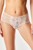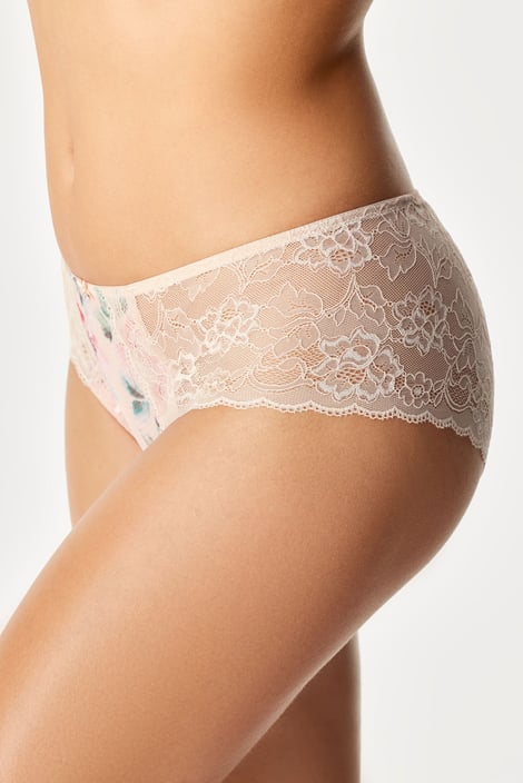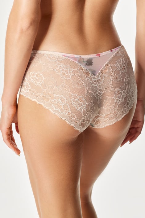 Francouzské kalhotky Camelia z jemně vyšívané krajky a květinového tylu. Něžný kousek pro váš zadeček.