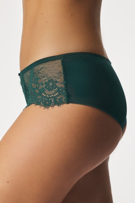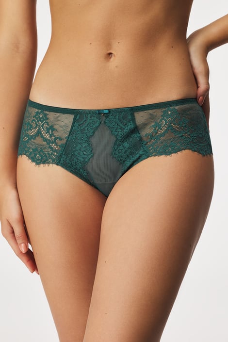 Francouzské kalhotky Jessica Pine z pavučinkově lehkého tylu, krajky a jemné síťoviny. Nařasený svislý šev na zadní straně se postará o lichotivě vymodelovaný zadeček.