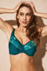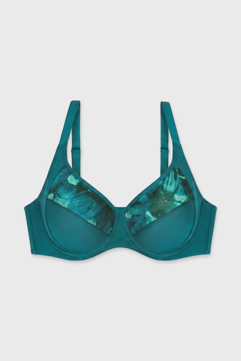 Horní díl plavek Jadegreen v nádherné zelené potěší majitelky větších předností. Prsům dopřejí přirozený tvar nevyztužené košíčky s kosticemi. Oblast výstřihu zdobí třpytivý potisk. Luxusní španělský materiál s jemnými lurexovými vlákny byl vyroben ekologicky, neprosvítá a je odolný proti UV záření. Navrženo specialisty Astratexu.