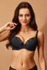 Horní díl plavek Lia s gelovými košíčky pro přirozený Push-Up efekt. Jednoduché černé provedení zdobí pouze v horní části košíčků lesklé pásky se zlatou aplikací. Z dílny Astratexu.