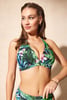 Horní díl plavek Padma Flowers II v oblíbeném trojúhelníčkovém střihu pro malá i větší prsa. Vyztužené košíčky pomohou jemně dotvarovat dekolt. Zavazování za krk opticky prsům zalichotí.