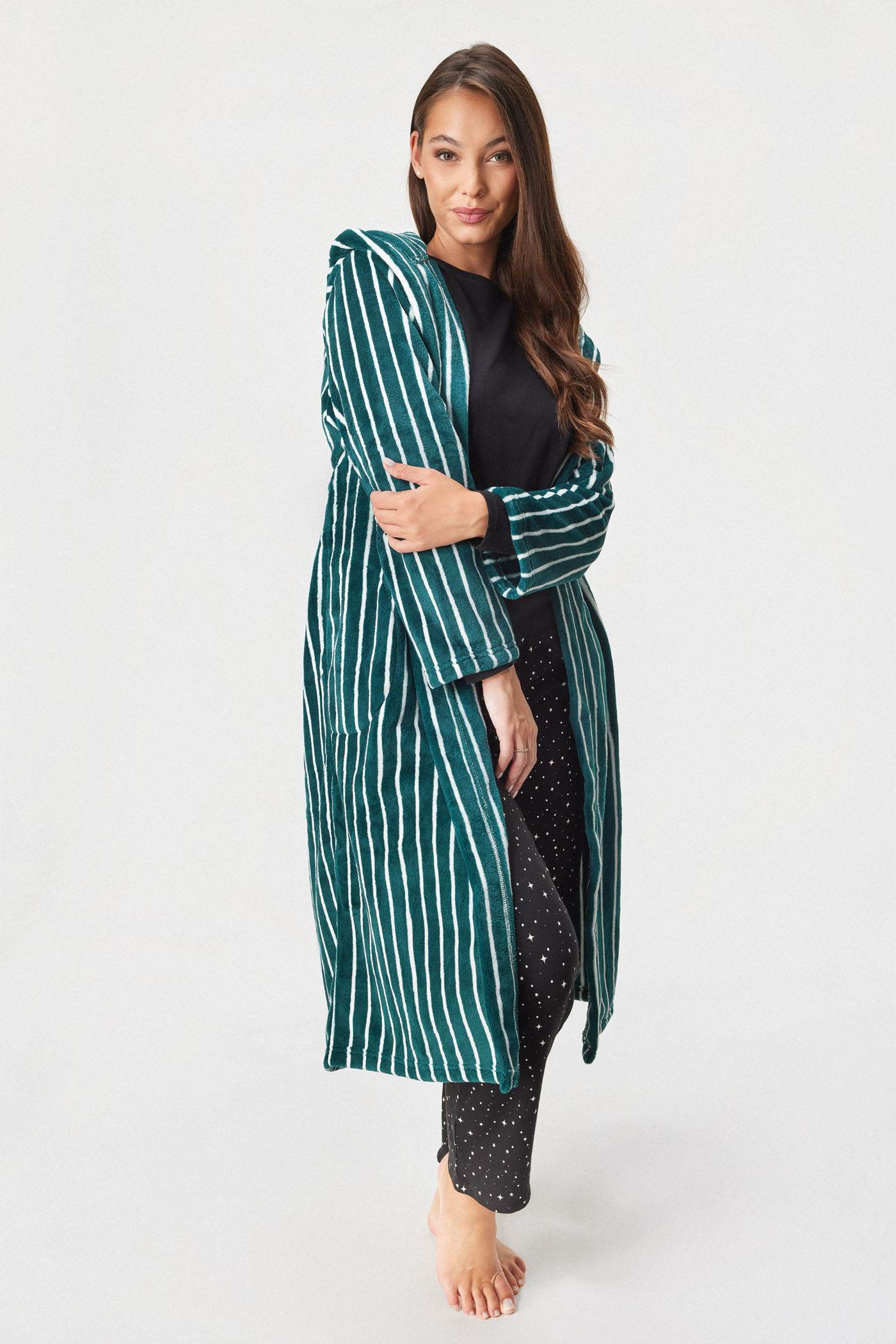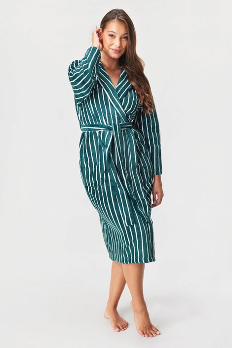 Zachumelejte se do hřejivého županu Moreno Stripe. Nasaďte kapuci a zavažte páskem v pase. Z měkounkého mikroplyše v krásné zelené barvě s bílým proužkem. Z dílny specialistů Astratexu.