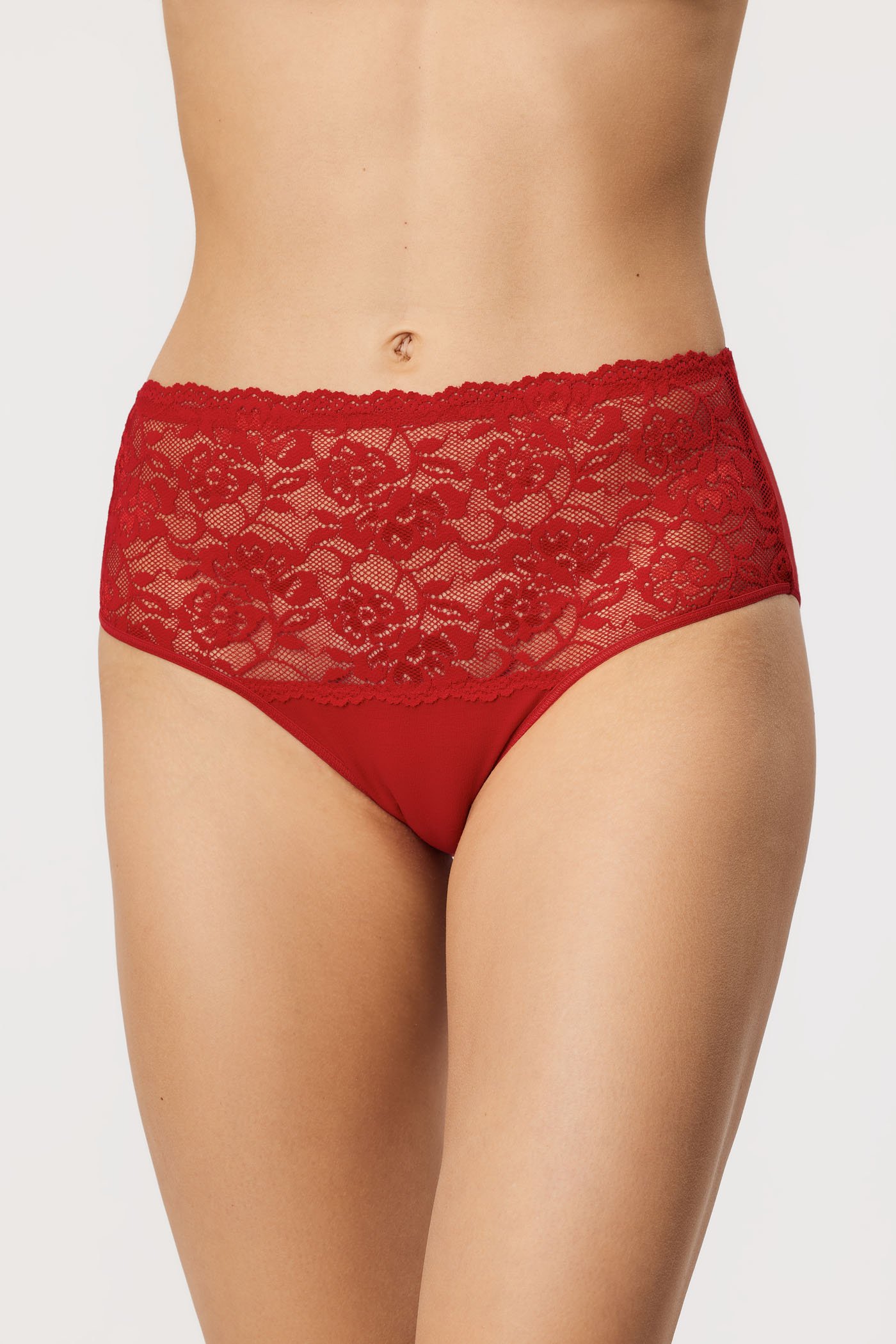 Užijte si bavlněné pohodlí s kalhotkami Alina. Modernímu vyššímu střihu vévodí na přední straně květinová krajka.