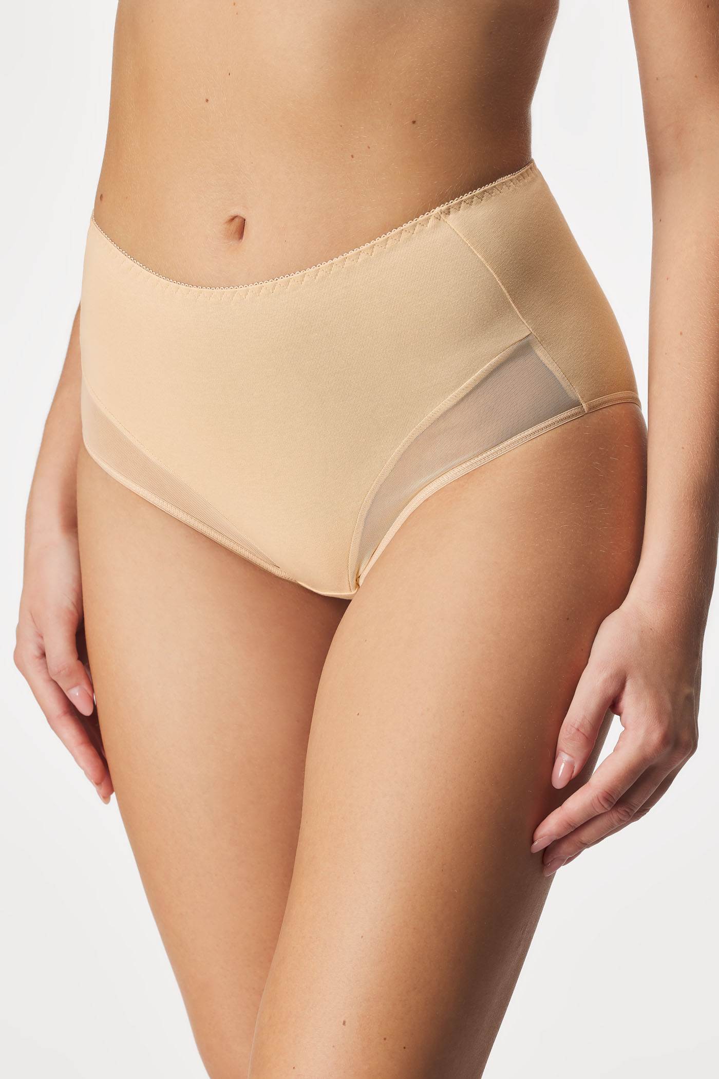 Klasické kalhotky Helena mají vyšší střih, který je velmi pohodlný. Přední část zdobí jemná síťovina.