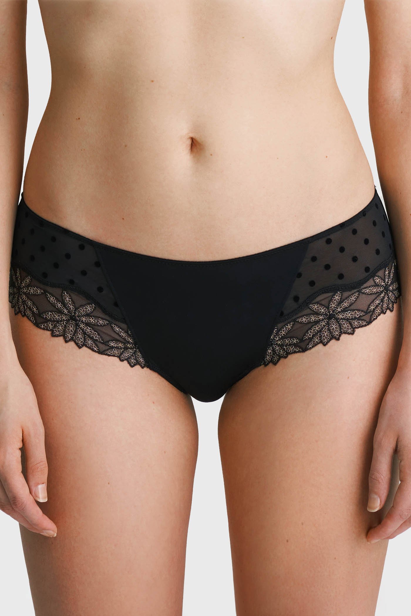 Francouzské kalhotky Joy jsou nejen krásné na pohled, ale i nesmírně pohodlné. Jsou ušité z hebkého mikrovlákna, které na bocích střídá jemný tyl se sametově hebkými puntíky a květinovou výšivkou.
