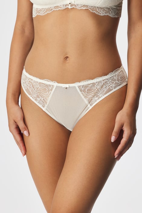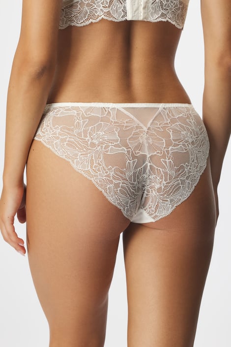 Klasické kalhotky Ella v kombinaci lehké krajky a jemné síťoviny. Decentně průsvitné.
